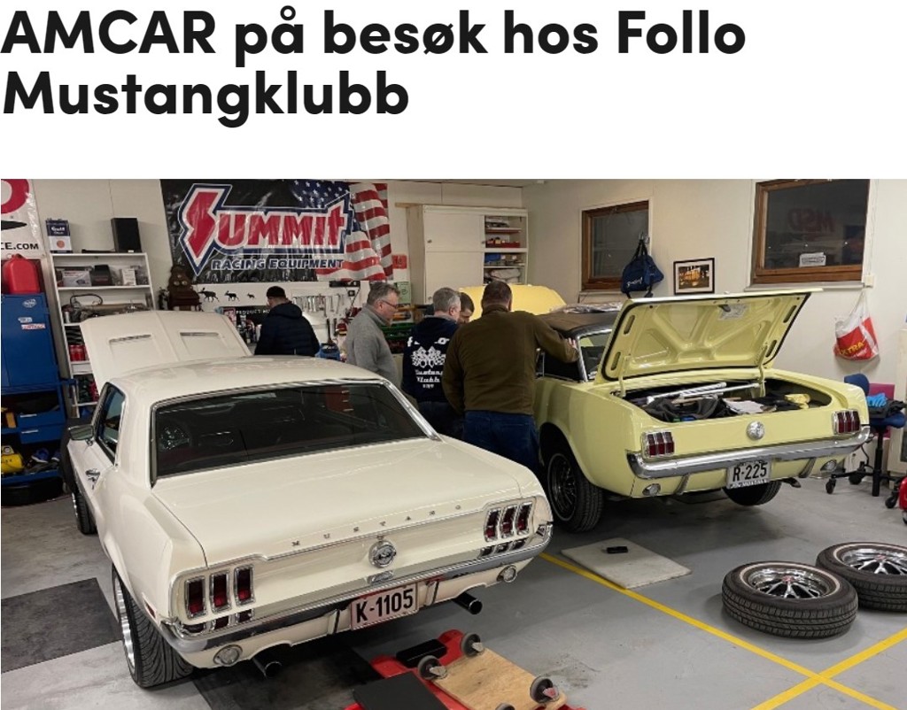 Amcar på besøk hos Follo Mustang Klubb Publisert av Frode Nielsen den 06.02.23. 23 januar var vi så heldige og fikk besøk av Amcar ute på våre lokalerTrykk på linken for å lese artikkelen:https://www.amcar.no/aktuelt/amcar+pa+besok+hos+follo+mustangklubb.html